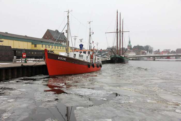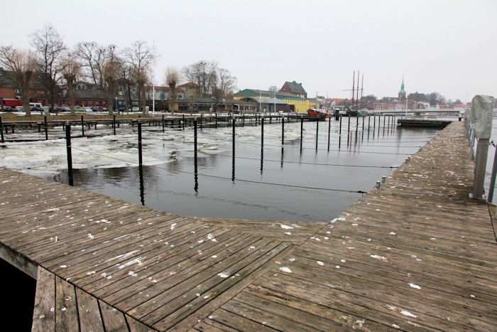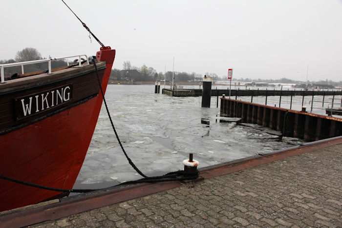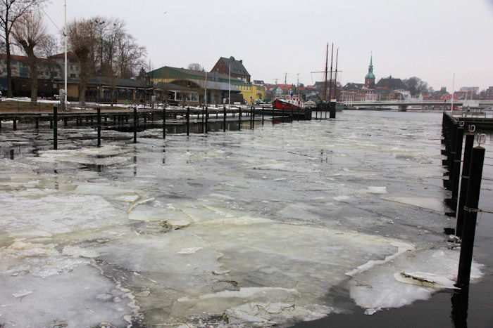 | 02.03.2011 - 8:23 Uhr - Kappeln/Schlei: Hafen Eislage auf der Schlei im Bereich Kappeln - Eisschollen PK-Speicher Gastliegerhafen mit Eisschollen Foto: Eckhard Schmidt - Kappeln - (C) 2011 |