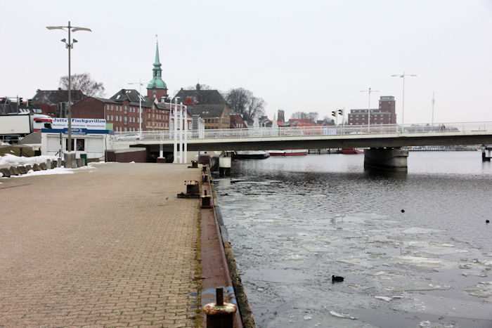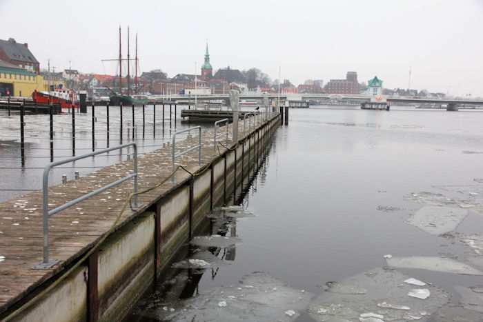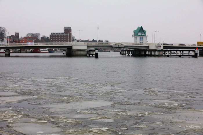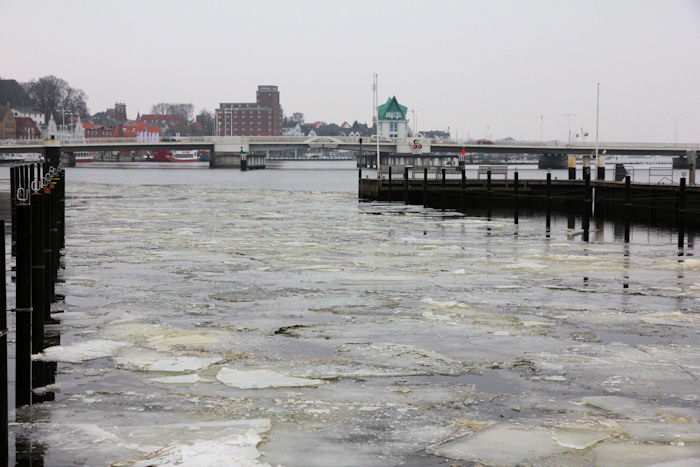 | 02.03.2011 - 8:10 Uhr - Kappeln/Schlei: Hafen Eislage auf der Schlei im Bereich Kappeln - Eisschollen Schleibrücke Ansicht von Süden Foto: Eckhard Schmidt - Kappeln - (C) 2011 |