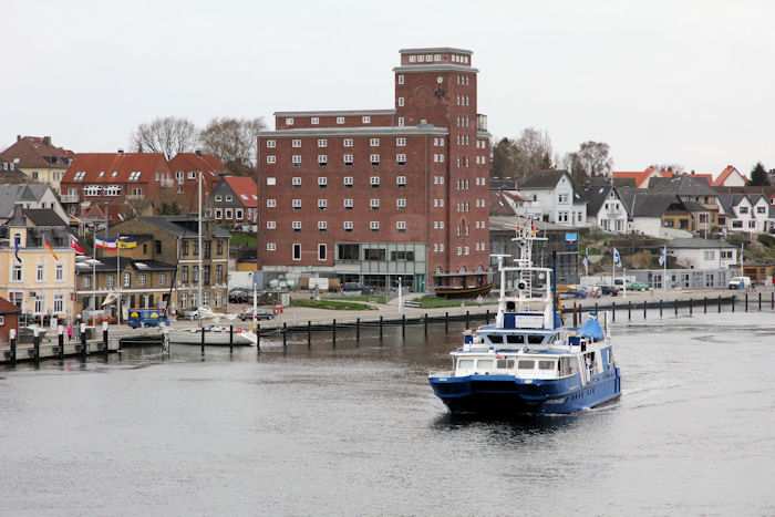 | 13.04.2011 - 8:48:49 Uhr - Kappeln/Schlei: Schleibrücke Brückenöffnung 8:45 Uhr mit HAITHABU und MERETE CHRIS Die HAITHABU in der nördlichen Einfahrt des Brückenleitwerkes. Foto: Eckhard Schmidt - Kappeln - (C) 2011 |