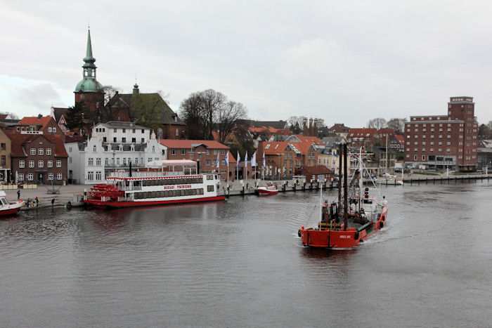 | 13.04.2011 - 8:48:51 Uhr - Kappeln/Schlei: Schleibrücke Brückenöffnung 8:45 Uhr mit HAITHABU und MERETE CHRIS Gleich hat die HAITHABU die Brückendurchfahrt erreicht. Foto: Eckhard Schmidt - Kappeln - (C) 2011 |
