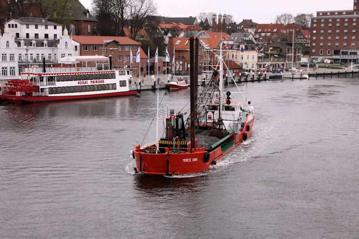 | 13.04.2011 - 8:50:21 Uhr - Kappeln/Schlei: Schleibrücke Brückenöffnung 8:45 Uhr mit HAITHABU und MERETE CHRIS Zügig nähert sich die MERETE CHRIS der Schleibrücke. Foto: Eckhard Schmidt - Kappeln - (C) 2011 |