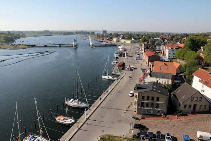 | 09.05.2011 - 9:13 Uhr - Kappeln/Schlei: PK-Speicher im Nordhafen 10. Obergeschoss - Nordseite - Aussicht Fischereihafen Foto: Eckhard Schmidt - Kappeln - (C) 2011 |