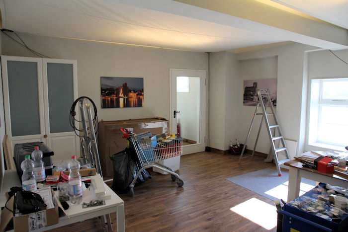 | 09.05.2011 - 9:26 Uhr - Kappeln/Schlei: PK-Speicher im Nordhafen 2. Obergeschoss - Südseite Zimmer 4 Beim Bild wurde auf der rechten Seite etwas abgedeckt. Foto: Eckhard Schmidt - Kappeln - (C) 2011 |