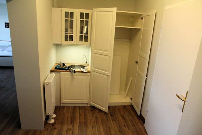 | 09.05.2011 - 9:22 Uhr - Kappeln/Schlei: PK-Speicher im Nordhafen 2. Obergeschoss - Südseite Zimmer 3 Südliche Hälfte der Zelle 3 mit Bad und WC Foto: Eckhard Schmidt - Kappeln - (C) 2011 |
