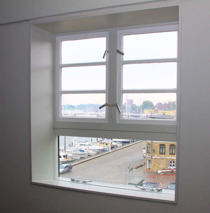 | 16.06.2011 - 8:14 Uhr - Kappeln/Schlei: PK-Speicher im Nordhafen 3. Obergeschoss - Südseite Zimmer Mitte Fenster nach Süden mit Blick auf den Gastliegerhafen und die Schleibrücke. Foto: Eckhard Schmidt - Kappeln - (C) 2011 |