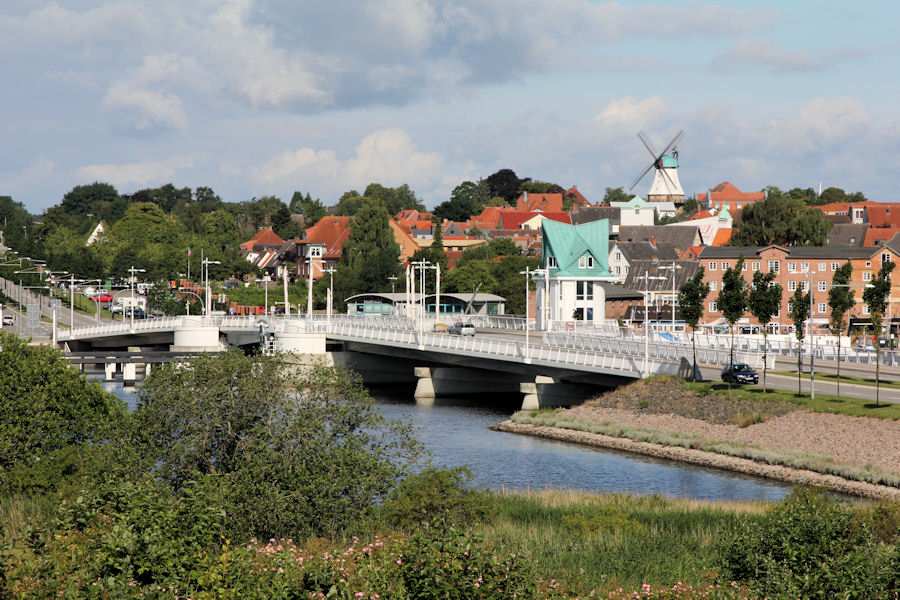 | 25.06.2011 - 8:39 Uhr - Kappeln/Schlei Hafenansichten von der anderen Seite der Schlei - Teil 2/2 Mühle Amanda Schleibrücke Foto: Eckhard Schmidt - Kappeln - (C) 2011 |