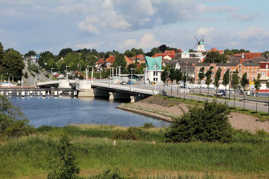 | 25.06.2011 - 8:33 Uhr - Kappeln/Schlei Hafenansichten von der anderen Seite der Schlei - Teil 2/2 Schleibrücke - Mühle Amanda Foto: Eckhard Schmidt - Kappeln - (C) 2011 |