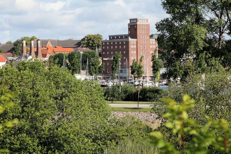 | 25.06.2011 - 8:34 Uhr - Kappeln/Schlei Hafenansichten von der anderen Seite der Schlei - Teil 2/2 Schleibrücke - Mühle Amanda Foto: Eckhard Schmidt - Kappeln - (C) 2011 |