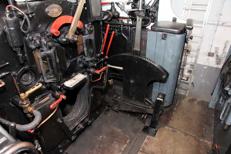 | 08.09.2011 - 13:28 Uhr - Kappeln/Schlei: Angelner Dampfeisenbahn Dampflok Julchen" - alle Federpakete eingebaut Führerstand Rechte Seite hinteres Federpaket vorderer Stehbolzen (nicht sichtbar) -- Federpaket -- hinterer Stehbolzen (unter dem Schutzbügel) Der vordere neue Stehbolzen und das Federpaket wurden gestern wieder eingebaut. Foto: Eckhard Schmidt - Kappeln - (C) 2011 |