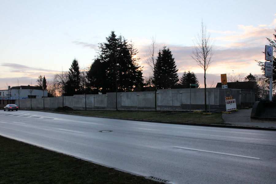 | 21.12.2011 - 9:13 Uhr - Kappeln/Schlei: B203 Lärmschutzwand für die Klaus-Groth-Straße Lärmschutzwand zwischen Firma Vogt und Autohaus Nicolaus Schmidt. Es wurde bereits die Betonwand errichtet. Foto: Eckhard Schmidt - Kappeln - (C) 2011 |