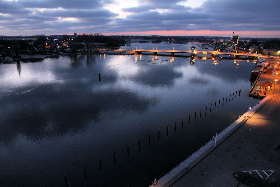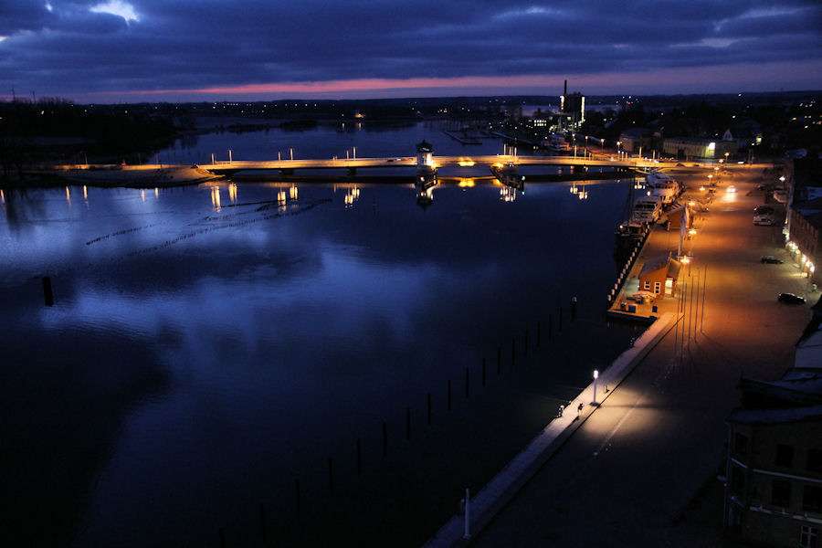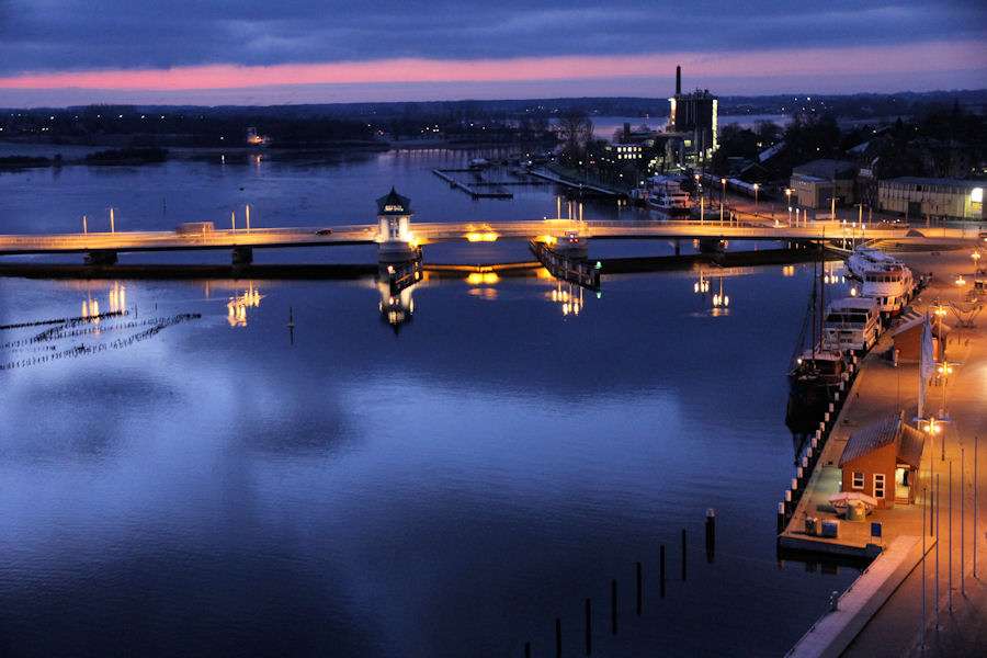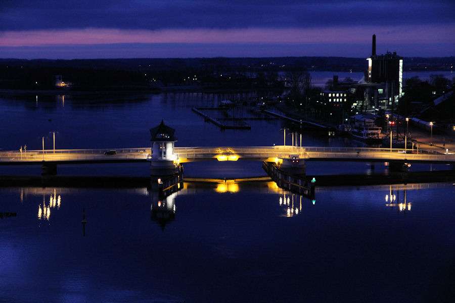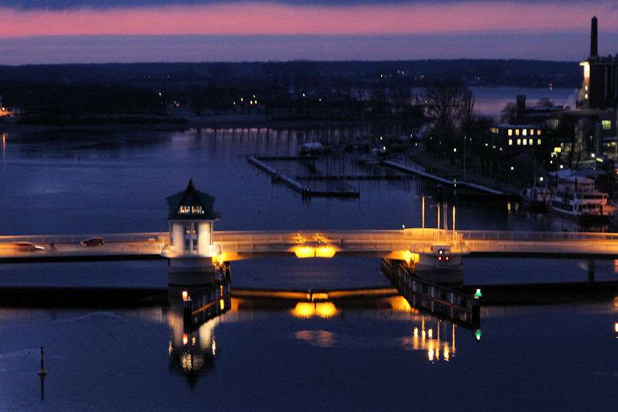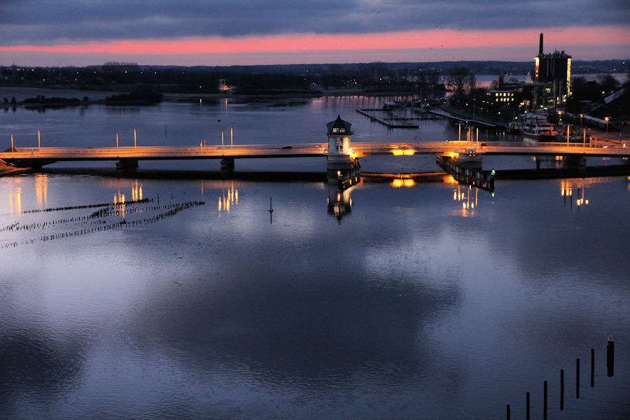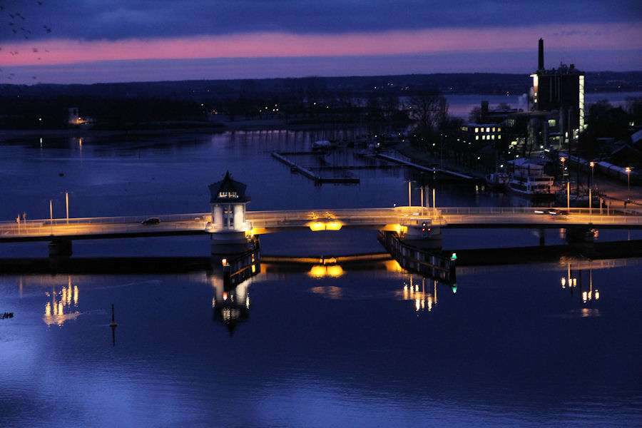 | 25.01.2012 - 7:40 Uhr - Kappeln/Schlei: Schleibrücke Ansichten vom PK-Speicher aus am frühen Morgen Foto: Eckhard Schmidt - Kappeln - (C) 2012 |