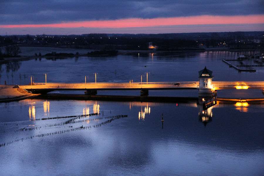| 25.01.2012 - 7:39 Uhr - Kappeln/Schlei: Schleibrücke Ansichten vom PK-Speicher aus am frühen Morgen Foto: Eckhard Schmidt - Kappeln - (C) 2012 |