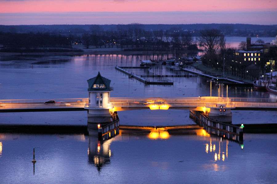 | 25.01.2012 - 7:44 Uhr - Kappeln/Schlei: Schleibrücke Ansichten vom PK-Speicher aus am frühen Morgen Foto: Eckhard Schmidt - Kappeln - (C) 2012 |