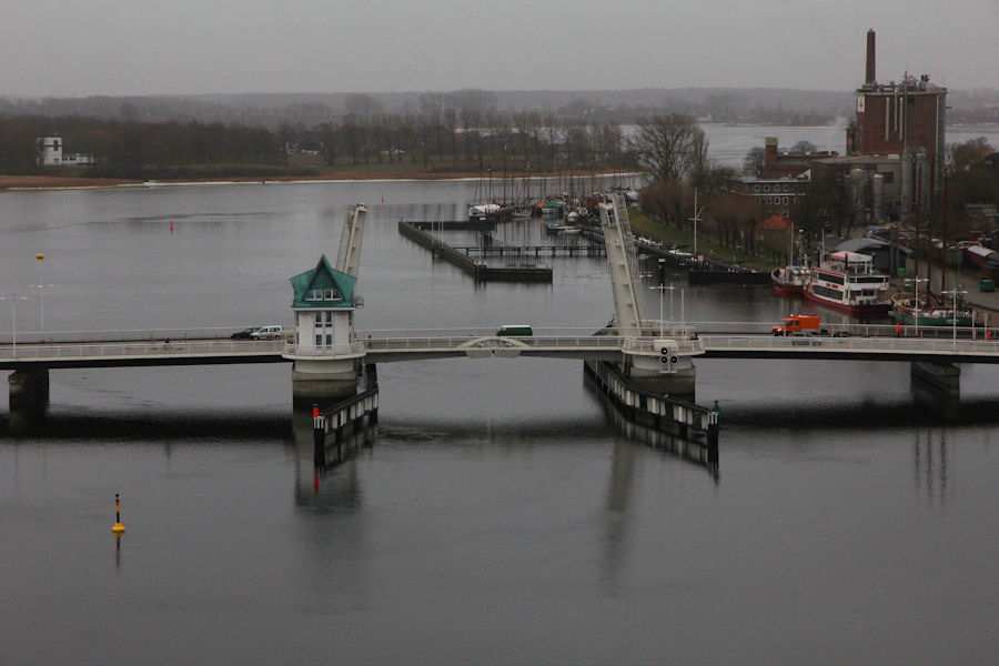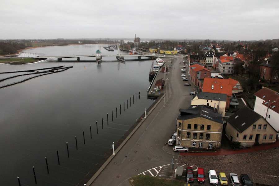 | 17.02.2012 - 8:40 Uhr - Kappeln/Schlei: PK-Speicher im Nordhafen 10. Obergeschoss - Südseite - Aussicht Südhafen Schleibrücke Nordhafen Foto: Eckhard Schmidt - Kappeln - (C) 2012 |