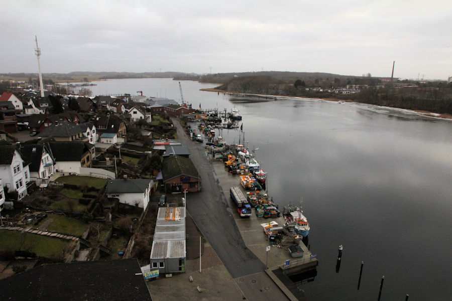 | 17.02.2012 - 8:41 Uhr - Kappeln/Schlei: PK-Speicher im Nordhafen 10. Obergeschoss - Nordseite - Aussicht Fischereihafen - Schlei - Ellenberg Foto: Eckhard Schmidt - Kappeln - (C) 2012 |