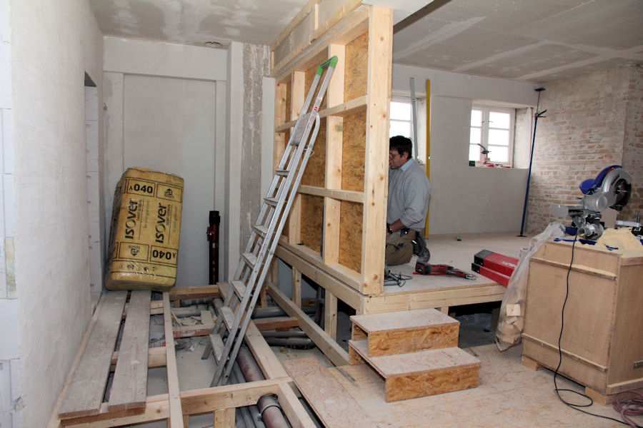 | 17.02.2012 - 8:50 Uhr - Kappeln/Schlei: PK-Speicher im Nordhafen 5. Obergeschoss - Süd- und Ostseite Zimmer 12 Ausbauarbeiten Foto: Eckhard Schmidt - Kappeln - (C) 2012 |