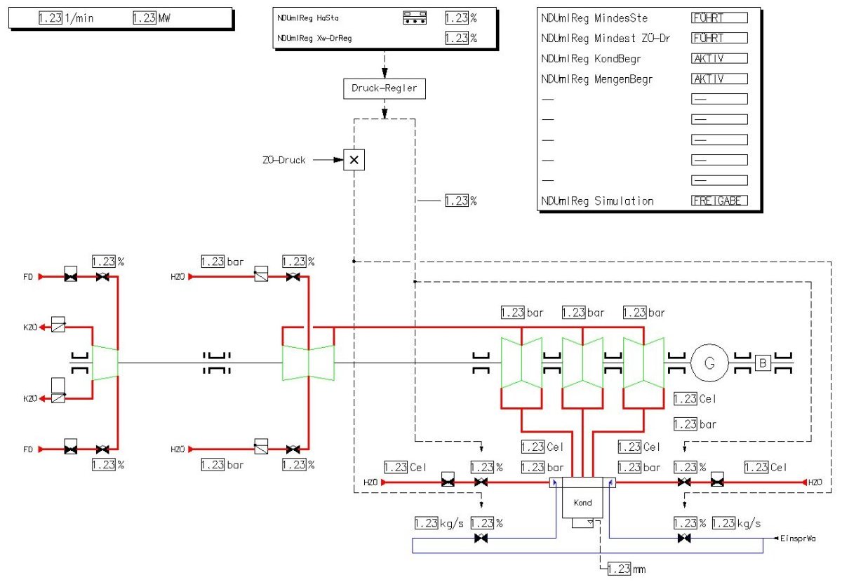 | Kraftwerk Lippendorf: Block R und S Bedienbild der NDU-Regelung Bei diesem Bild handelt es sich um eine Aufgabenstellung für die Firma SIEMENS. (Ausgeblendet sind die zugehörigen Kennzeichen) Rechner für die NDU-Regelung Block S: S0CJK03BA003 und S0CJK03BA004 In den Rechnern ist auch das komplette Programm für die NDU-Regelung hinterlegt. Siehe auch Liste der Funktionsgruppen (Bild 2). Eckhard Schmidt - Kappeln |