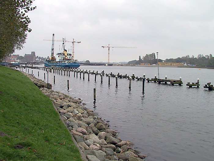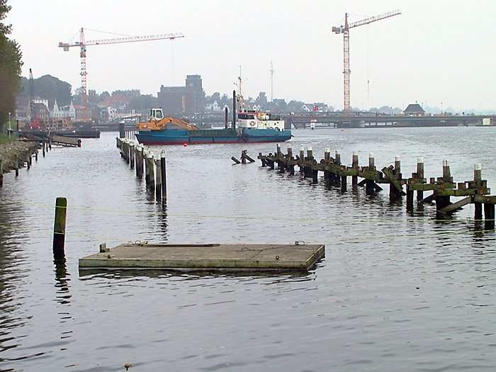 | 26.10.2001 - 12:15 Uhr - Kappeln/Schlei: Abbruch des alten ASC-Yachthafens Blick auf die Reste des südlichen Teils des alten ASC-Yachthafens. Foto: Eckhard Schmidt - Kappeln - (C) 2001 |