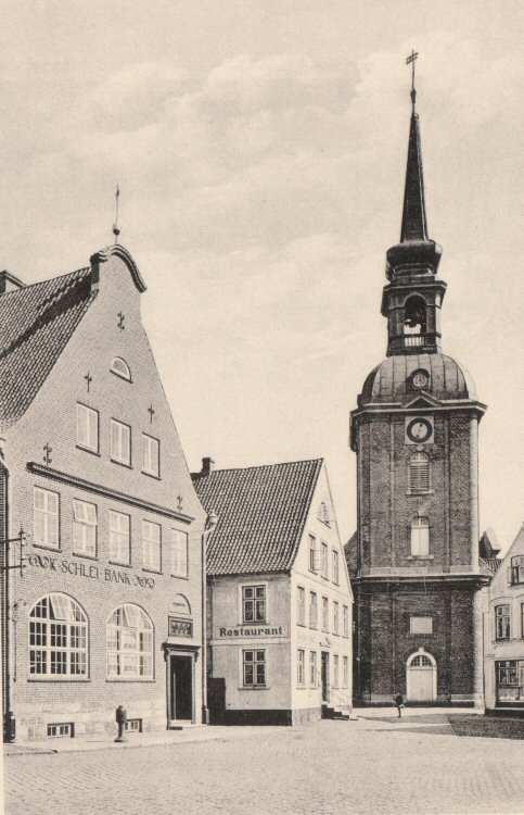 | Nikolai Kirche (ca. 1910) Hier hat sich heute (2004) nicht viel verändert gegenüber dieser Aufnahme. (Foto: Kappeln - Stadtarchiv) |