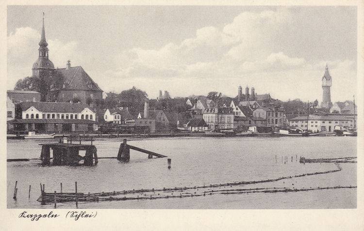 | Kappeln/Schlei: Historische Ansichtskarte Nordhafen (heutiger Fischereihafen) mit der Pontonbrücke im Hintergrund Karte: gelaufen - Poststempel: 1929 Ansichtskarte: Aus dem Besitz von Eckhard Schmidt - Kappeln |