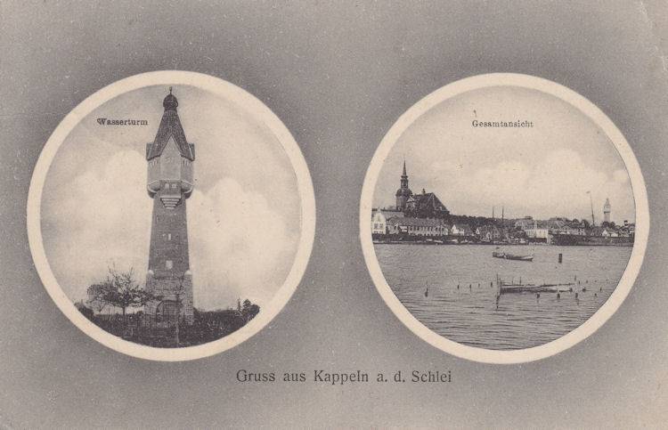 | Kappeln/Schlei: Historische Ansichtskarte Wasserturm - Nordhafen Karte: gelaufen - Poststempel: 1914 Ansichtskarte: Aus dem Besitz von Eckhard Schmidt - Kappeln |