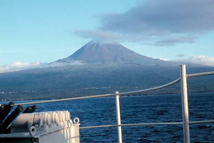 | 1967 - Zerstörer 3 (Z3) - D172 Vulkan Pico (Azoren) Der Vulkan Pico hat eine Höhe von 2351 Metern. Foto (Dia): Eckhard Schmidt - Kappeln (1967) |