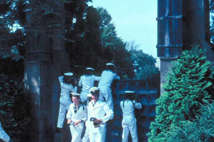 | 1967 - Zerstörer 3 (Z3) - D172 Newport (Rhode Island) Um ein besseres Foto zu erhalten, erklimmen einige von uns das Eingangstor. Foto (Dia): Eckhard Schmidt - Kappeln (1967) |