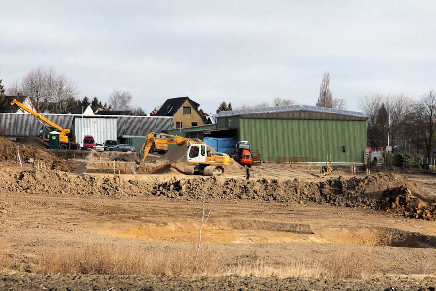 | Bild 2/12 Ansicht vom alten Bauhof der Stadt Kappeln. Auf der Baustelle werden bereits Vorarbeiten für Betonarbeiten gemacht. Die Betonarbeiten werden von der Baufirma Henning Molzen aus Satrup ausgeführt. |