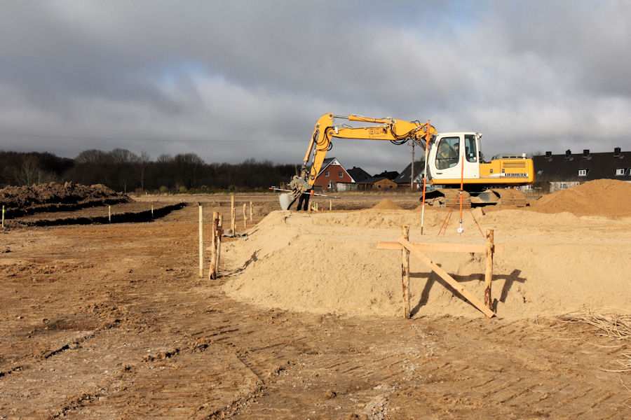 | 12.03.2012 - 9:47 Uhr - Kappeln/Schlei: Arnisser Straße Baustelle Tischlerei Mau: Neubau von zwei Hallen Bild 1/12 Ansicht vom alten Bauhof der Stadt Kappeln. Es wird gerade ein Kunststoffrohr von dem kleineren Teich des Regenrückhaltebeckens in Richtung Norden verlegt. Rechts im Bild direkt an der Arnisser Straße steht ein Drossel-Schacht. Über diesen Schacht wird später das Regenwasser vom Rückhaltebecken in einen bestehenden Graben (nicht sichtbar von hier) eingeleitet. Das Regenwasser fließt dann nach rechts in die Schlei. --------------------------------------------- Lagepläne der Baustelle Am Bau beteiligte Firmen --------------------------------------------- Foto: Eckhard Schmidt - Kappeln - (C) 2012 |