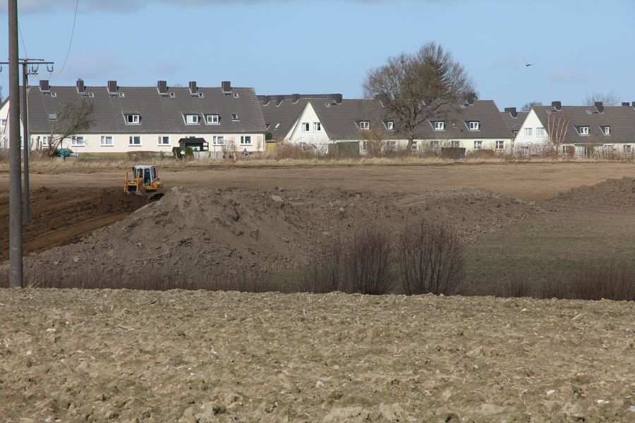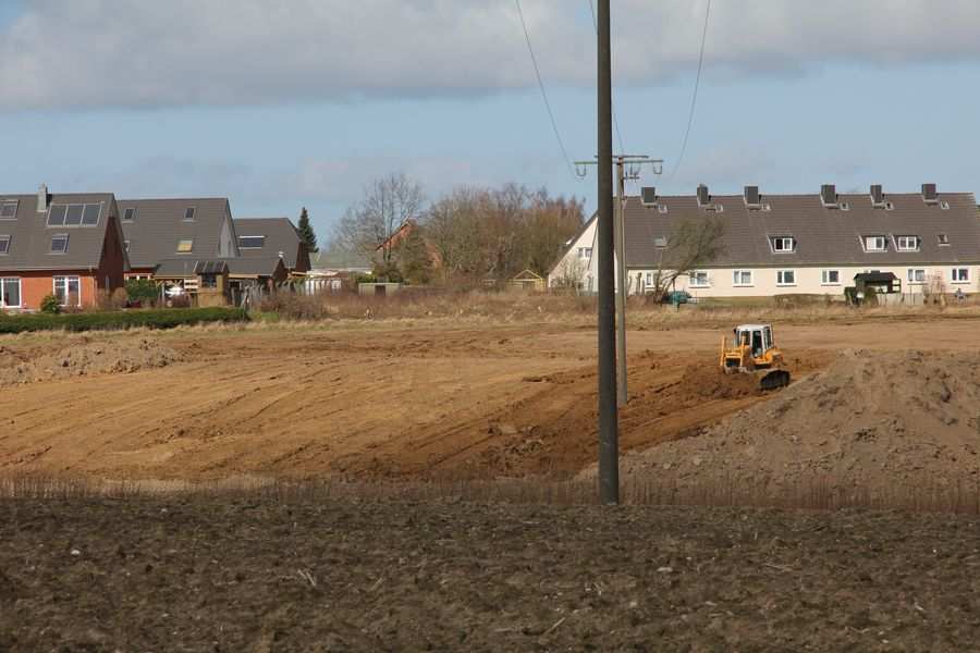 Bild 4/6 Der abgetragene Boden wird mit Hilfe einer Planierraupe auf der Westseite des Geländes verteilt. |
