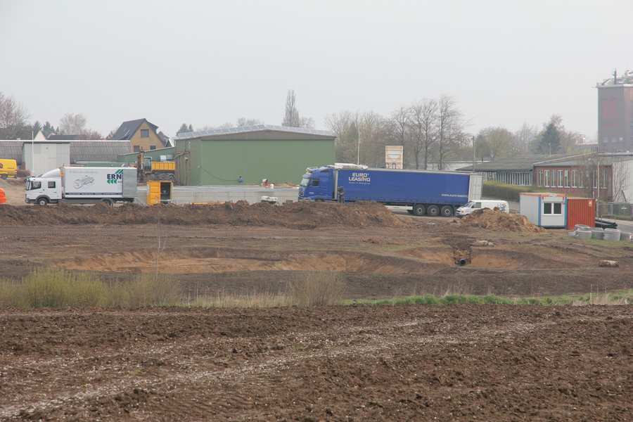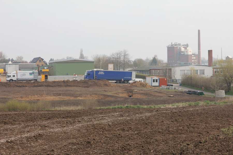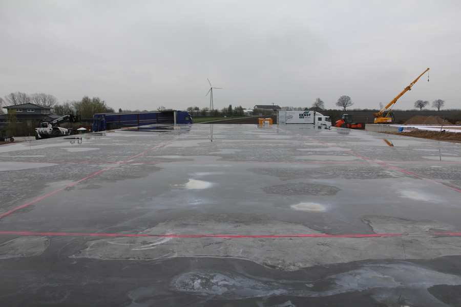 | Bild 1/15 Betonsohle der Werkhalle - Baustraße Mitte - Baugelände der Lagerhalle Zufahrt zu den Hallen Ansicht von Norden |