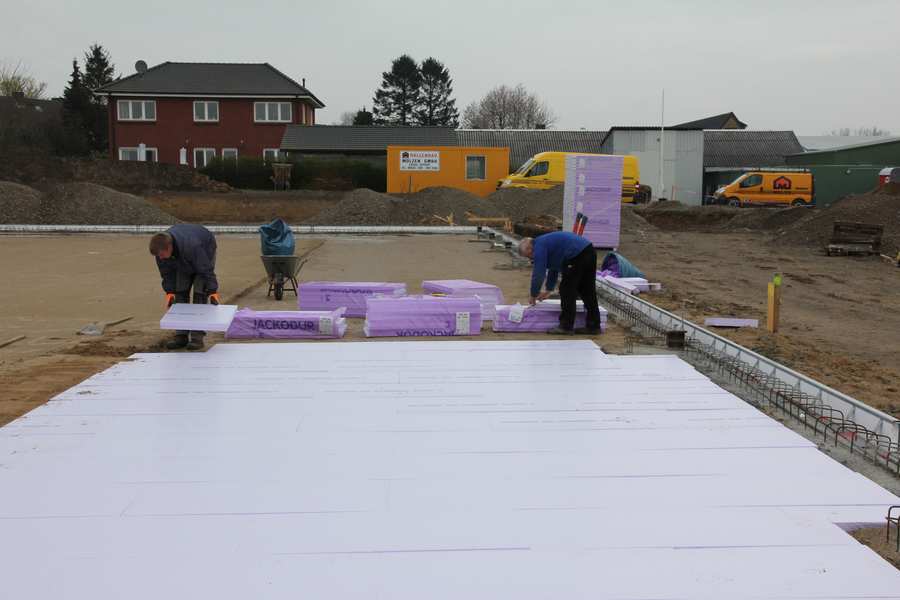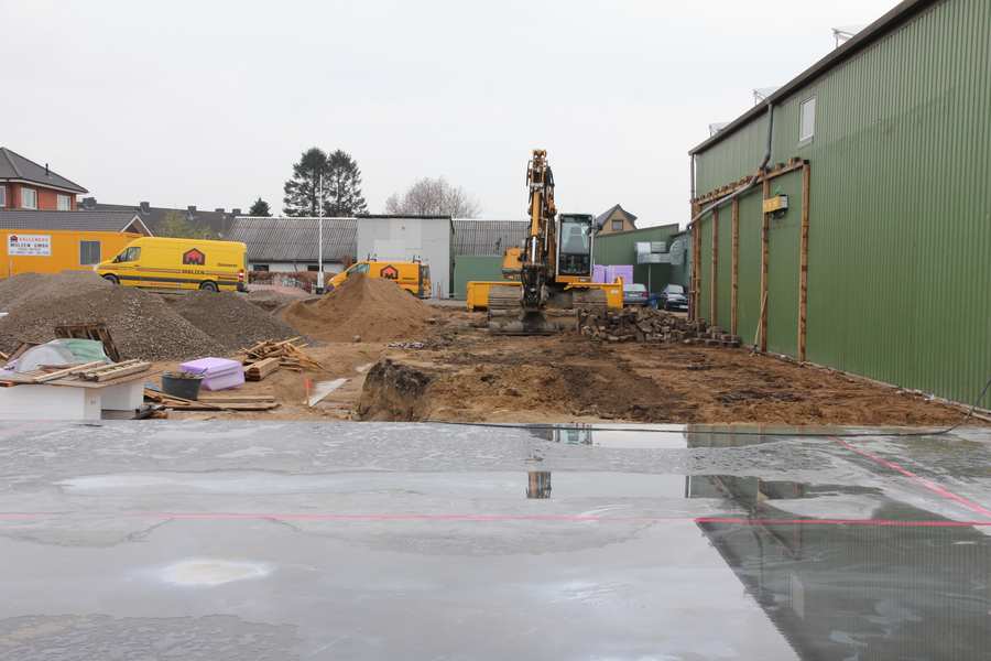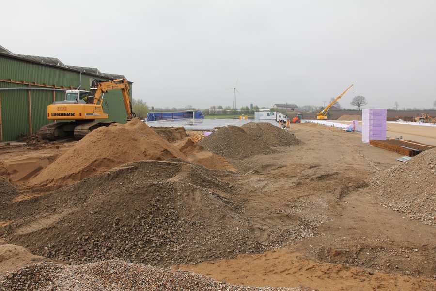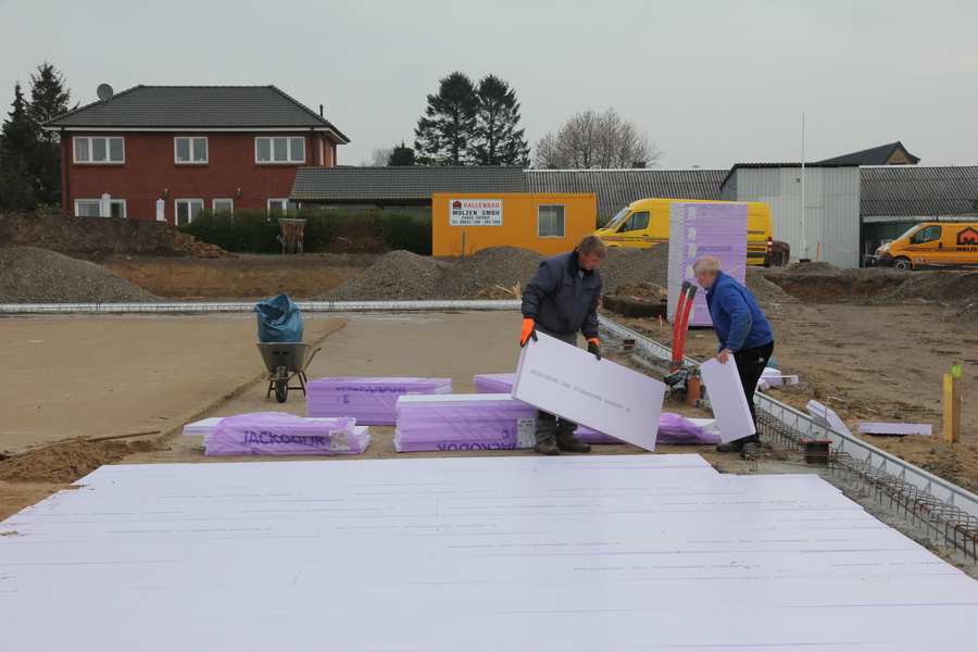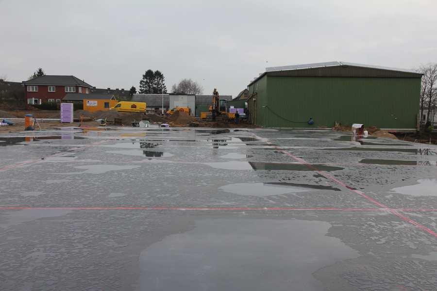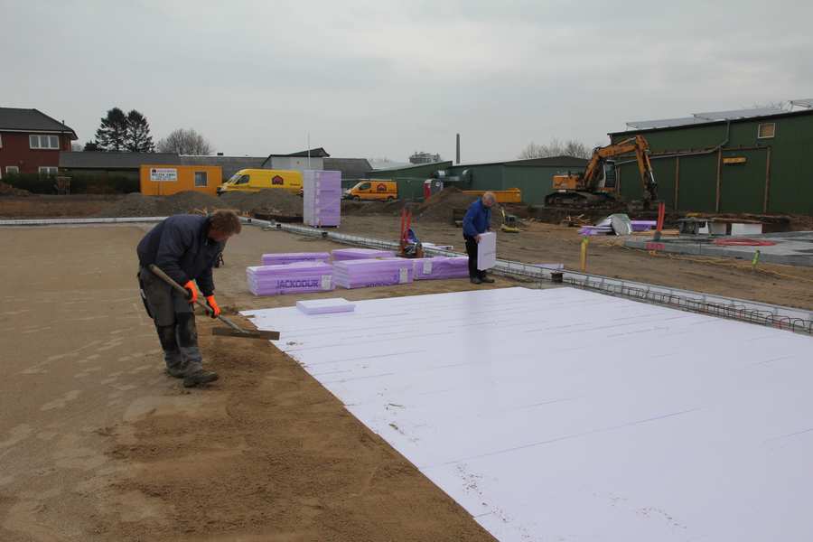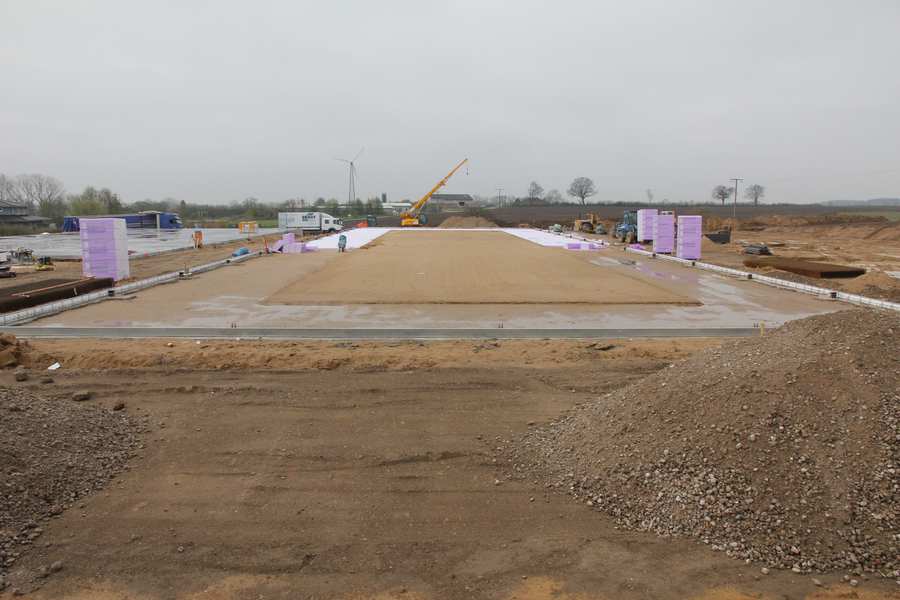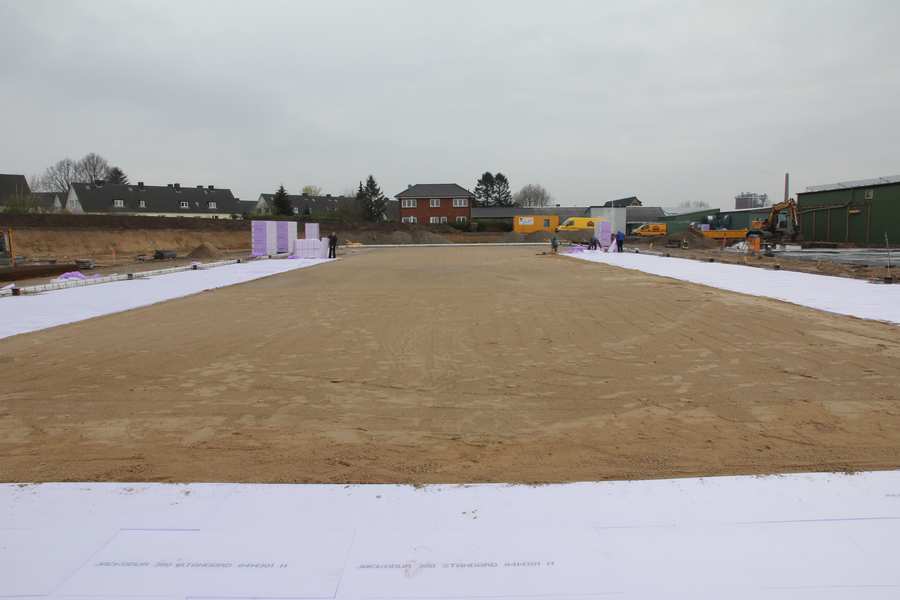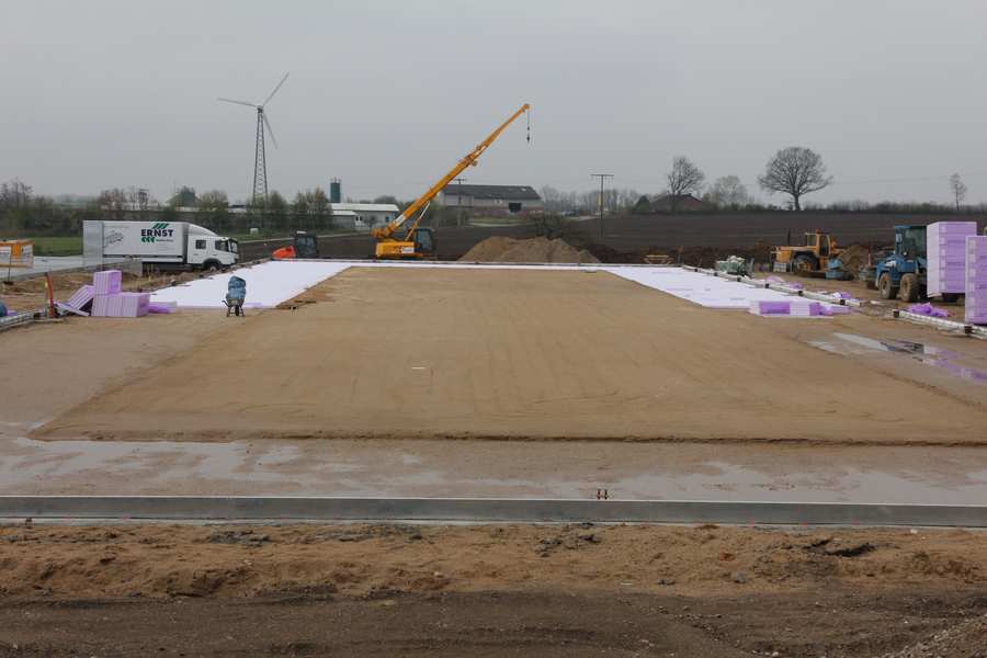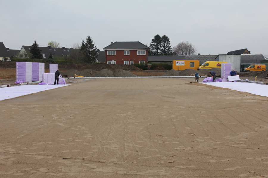 | Bild 3/3 Gelände westlich der Lagerhalle - Baustraße West - Baugelände Lagerhalle - Baustraße Mitte Es werden gerade die Wärmedämmplatten verlegt. |