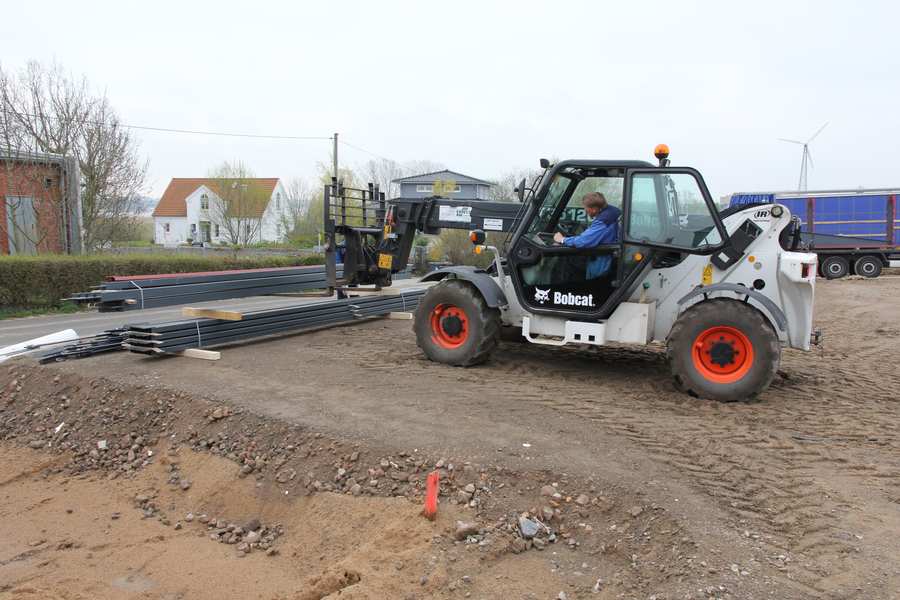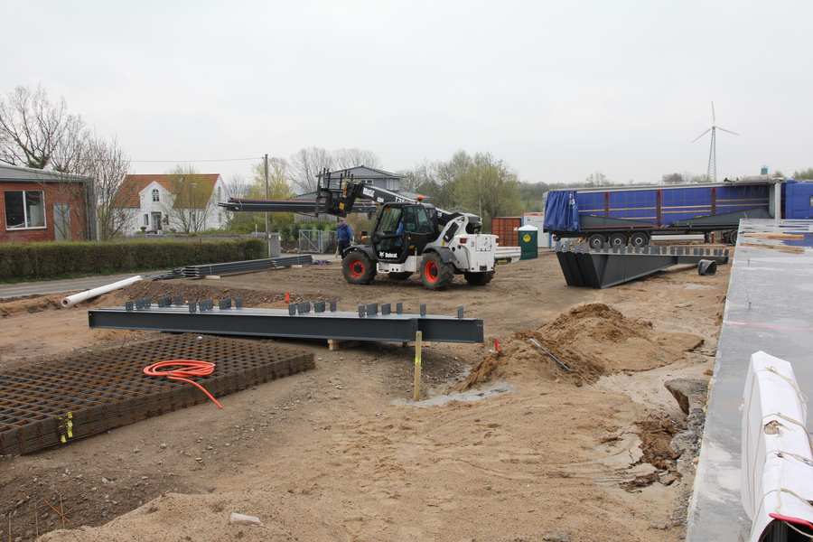 | Bild 3/15 Baugelände der Lagerhalle Ansicht von Norden Es werden gerade die Wärmedämmplatten verlegt. |