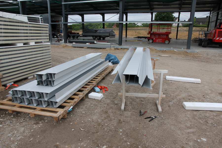 Bild 6/12 Werkhalle Nordseite Fensterbänke: Einbau der roten Profilbleche |