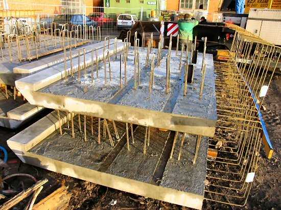 | 06.01.2005 - Nordhafen: Abriss Spannbetonkaiplatte und Neubau Tagesliegerhafen So sehen sie also aus die Betonplatten, welche außen vor die Spundwand gehängt werden sollen. Zu sehen ist hier die Spundwandseite mit den herausragenden Anschlusseisen für den Betonkopf. |