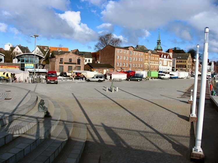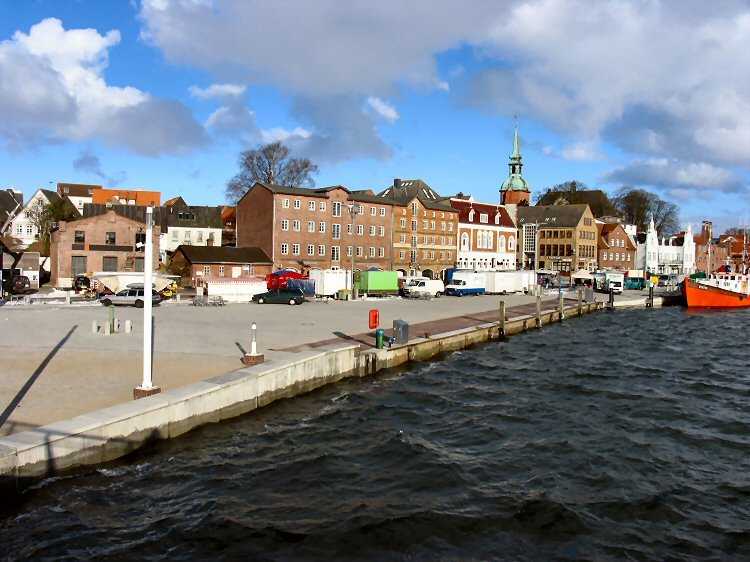 | 27.02.2005 - Das Hafenvorfeld vor einem Jahr und heute. Foto: 27.02.2005 Blick von der neuen Schleibrücke auf das Hafenvorfeld zwischen dem Hohlweg und dem Fährberg. Heute findet auf dem Hafenvorfeld von der neuen Schleibrücke bis zum Fischereihafen im Nordhafen der Fischmarkt statt. Außentemperatur im Minusbereich. Die gefühlte Temperatur beträgt bei dem herrschenden Nordostwind ca. - 15 Grad Celsius. |