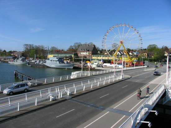 | 05.05.2005 - 27. Heringstage Kappeln vom 05.05. bis 08.05.2005 (Siehe auch: www.heringstage-kappeln.de) Blick vom Brückenwärterhaus in Richtung Südhafen. Heute werden die 27. Heringstage in Kappeln eröffnet. |