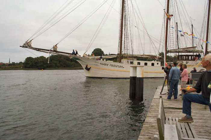 | 11.09.2005 - 10:38 Uhr - Kappeln/Schlei: Südhafen Tiessen-Race 2005 Auslaufen der Traditionssegler der zweiten Gruppe -> Brückenpassage 10:45 Uhr. Blick vom Kai des Südhafen auf das Ablegemanöver. Es haben sich auch wieder einige Sehleute" (wie sehen) eingefunden. Es laufen ja immer mal Traditionssegler den Kappelner Hafen an, aber nicht so viele wie an diesem Wochenende. |