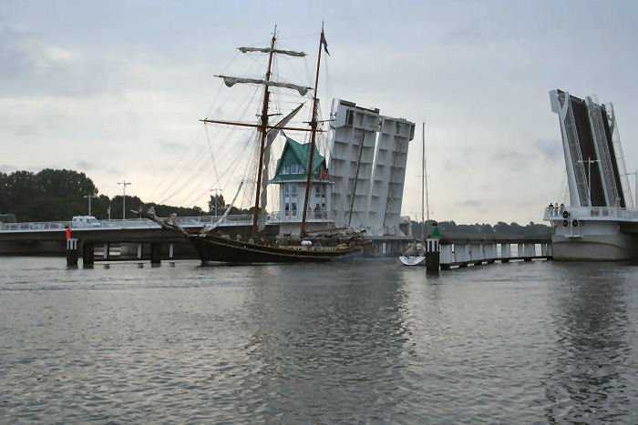 | 10.09.2005 - 12:53 Uhr - Kappeln/Schlei: Schleibrücke Reguläre Brückenöffnungszeit 12:45 Uhr. Zahlreiche Sportboote passieren die Brücke in beiden Richtungen. Die Ankunft der Traditionssegler (Tiessen-Race 2005) ist für 15:45 Uhr angekündigt. Siehe separaten Fotobeitrag. |