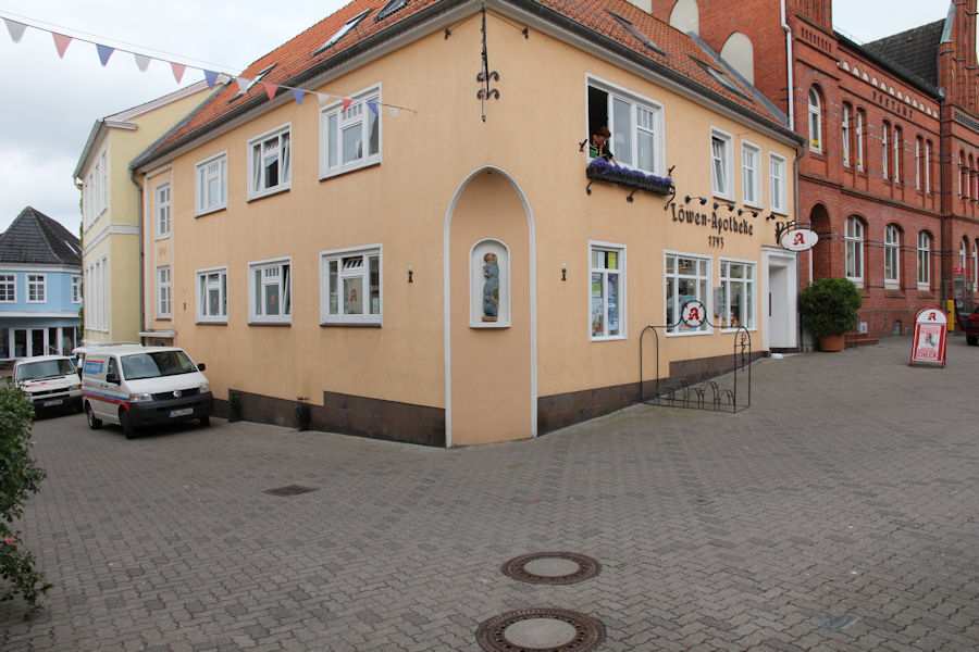 | 11.06.2012 - 8:43 Uhr - Kappeln/Schlei: Poststraße Verbindung zwischen der Braun´schen Villa und der Löwen-Apotheke? Die Verbindung wurde eine über Flaschenpost aus dem Jahre 1869 hergestellt. Bild 3/7 Löwen-Apotheke |