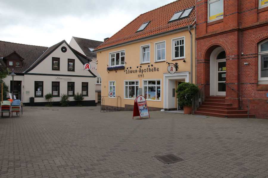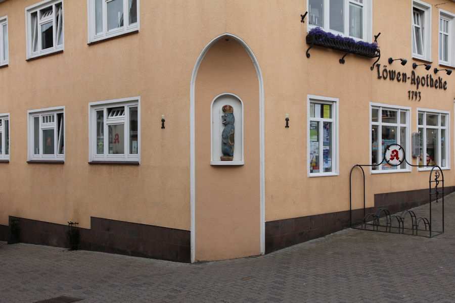 Bild 7/7 Löwen-Apotheke und ehemaliges Postamt (rotes Gebäude) |