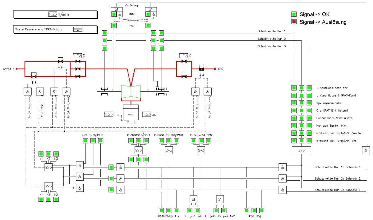 | Kraftwerk Lippendorf: Block R und S Bedienbild des SPAT-Schutzes Bei diesem Bild handelt es sich um eine Aufgabenstellung für die Firma SIEMENS. (Ausgeblendet sind die zugehörigen Kennzeichen) Rechner für den SPAT-Schutz Block S: S0CJK01BA005, S0CJK02BA005 und S0CJK03BA005 In den Rechnern ist auch das komplette Programm für den SPAT-Schutz hinterlegt. Siehe auch Liste der Funktionsgruppen (Bild 2). Eckhard Schmidt - Kappeln |