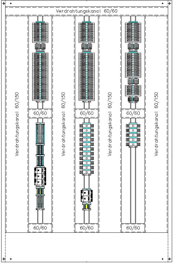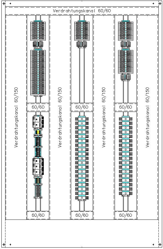 | Kraftwerk Lippendorf: Block R und S Turbinen-Klemmen-Schrank rechts Montageplatte mit den Klemmen und Messumformern. Oberer Bereich: Klemmenblöcke mit Maxi-Termi-Point-Anschlüssen. Unterer Bereich: Schraubklemmen (links) und Relais für die Prüfmagnetventile und Temperatur-Messumformer (mitte und rechts). Eckhard Schmidt - Kappeln |