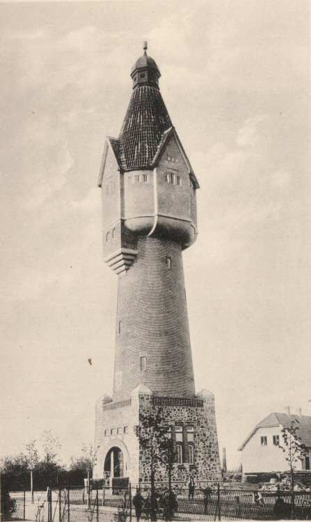 | Wasserturm (ca. 1910) Der Wasserturm stand an der Straßenecke Gartenstraße - Kirchstraße. Der Turm wurde 1910 eingeweiht und 1975 abgerissen. Siehe auch Zeichnung und Baubeschreibung vom Wasserturm. (Foto: Kappeln - Stadtarchiv) |