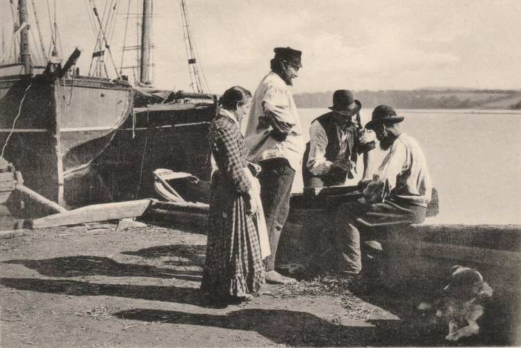 | Fischhandel am Nordhafen (ca. 1910) (Foto: Kappeln - Stadtarchiv) |
