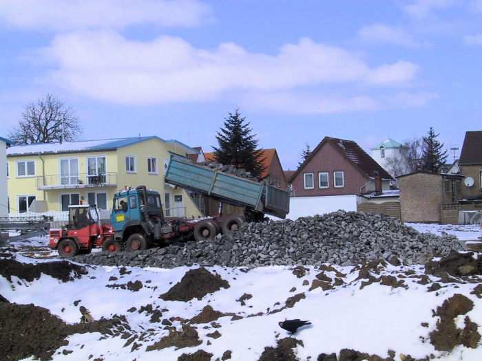 | 20.03.2001 - 12:45 Uhr - Kappeln/Schlei: Neubau einer Klappbrücke Alter Zimmerplatz Die Granitsteine für die Brückenpfeiler werden in meiner direkten Nachbarschaft auf dem Alten Zimmerplatz" zwischengelagert. Foto: Eckhard Schmidt - Kappeln - (C) 2001 |