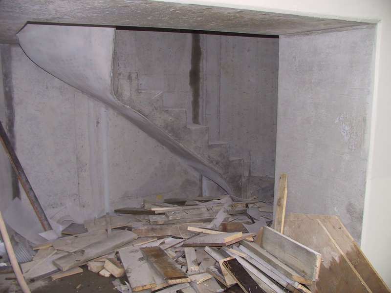 | 16.04.2002 - 11:05 Uhr - Kappeln/Schlei: Neubau einer Klappbrücke Pfeiler 40 Ich befinde mich im Treppenhaus am Südende des Pfeilers. Über die Treppe gelangt man in den Klappenkeller des Pfeilers. Im Treppenhaus gibt es drei Zwischendecken und vier Treppen. Foto: Eckhard Schmidt - Kappeln - (C) 2002 |