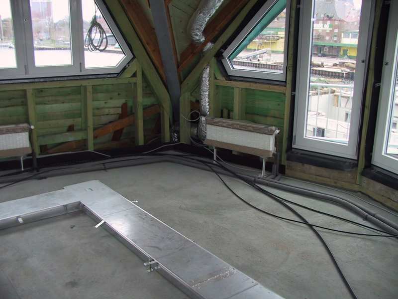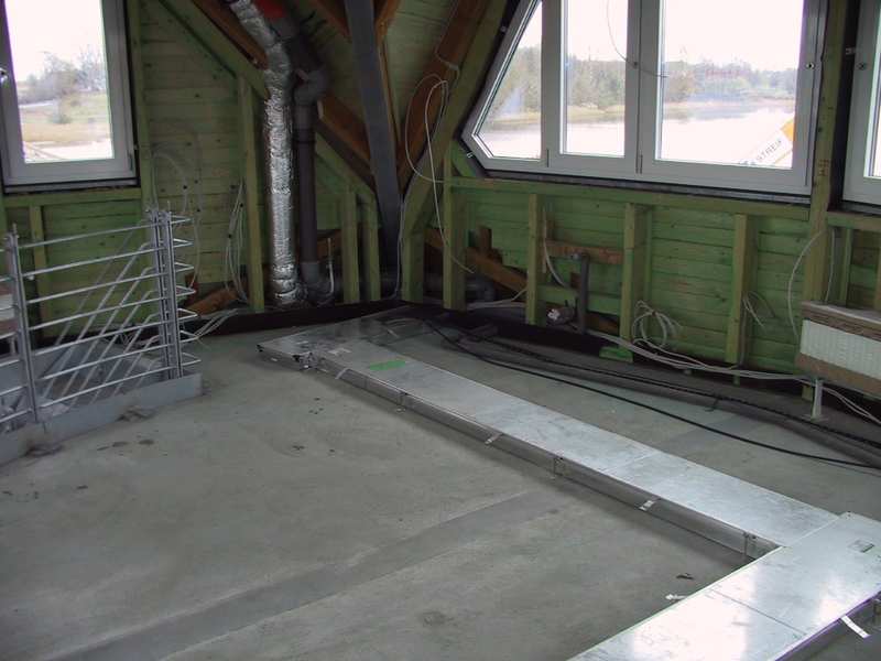 | 16.04.2002 - 11:14 Uhr - Kappeln/Schlei: Neubau einer Klappbrücke Pfeiler 40 - Brückenwärterhaus Ich befinde mich im Dachgeschoss des Brückenwärterhauses. In dieser Woche soll in allen drei Etagen der Estrich eingebracht werden. Foto: Eckhard Schmidt - Kappeln - (C) 2002 |