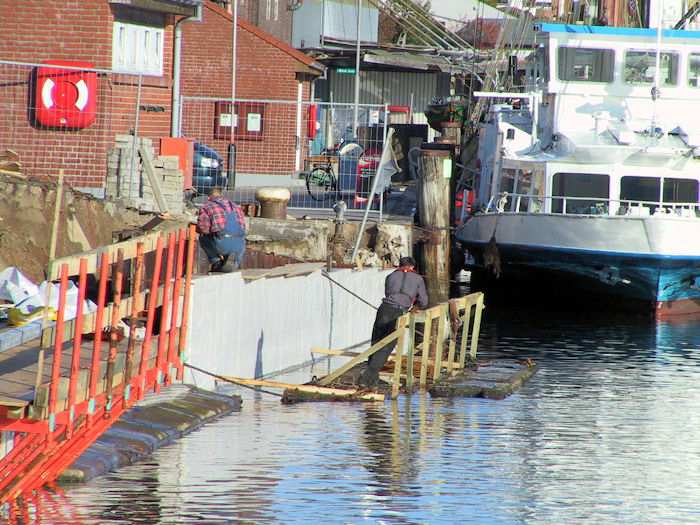 | 07.11.2003 - 10:24 Uhr - Kappeln/Schlei: Nordhafen Sanierung Kaiabschnitt 5 mit dem Pfeiler I der Drehbrücke Südliche Spundwand - Pfeiler I - Nördliche Spundwand Ansicht von der Schleibrücke Gemäß unserem Bürgermeister Roman Feodoria wird die Sanierung des Kaiabschnittes 5, wegen Schäden an den Spundwandflügelwänden, bis Mitte Dezember andauern. (Quelle: Schlei-Bote vom 6.11.2003) Foto: Eckhard Schmidt - Kappeln - (C) 2003 |