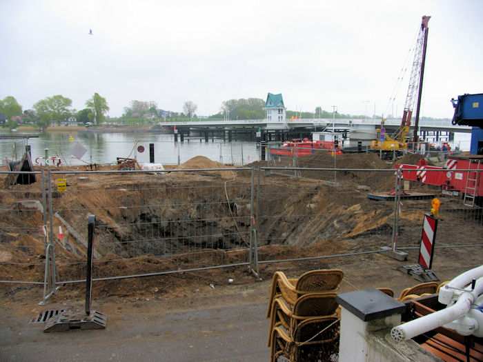 | 11.05.2004 - 7:47 Uhr - Kappeln/Schlei: Nordhafen Umgestaltung des Hafenvorfeldes: Schleibrücke / Hohlweg bis Fährberg Am Hafen - Einbau eines Regenwasserklärbeckens Vor der Gaststätte Cameo" wurde in den letzten Tagen ein großes Loch ausgehoben. In dieses Loch soll heute das Becken eingebaut werden. Foto: Eckhard Schmidt - Kappeln - (C) 2004 |